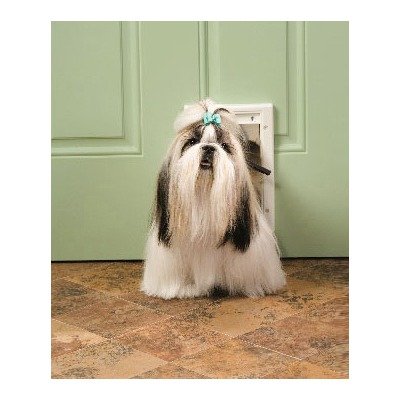 PPA00-10960 Size: Large Features: -Available in White.-Durable plastic frame with closing panel for security.-Great for storm doors.-Great for pets up to 15lbs.-Flap Opening: 5.13'' x 7.63''. Dimensions: -Small: 13.25'' H x 1.88'' W x 8.75'' D.-Medium: 17.75'' H x 1.88'' W x 11.88'' D.-Large: 22.38'' H x 2'' W x 14'' D.-X-Large: 30'' H x 2'' W x 17.38'' D.